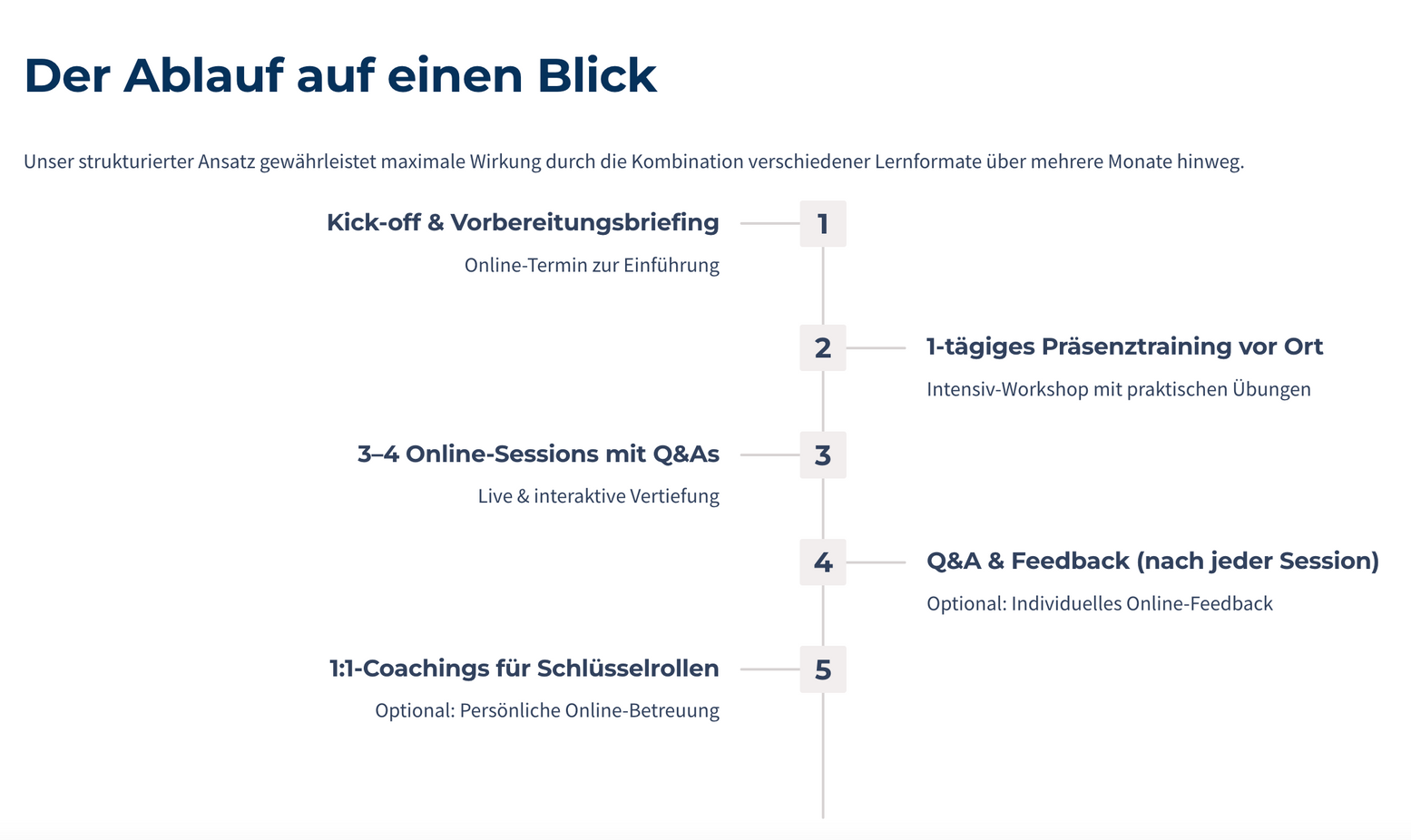 Hier siehst du auf einen Blick, wie unser Training Wirkung entfaltet – Schritt für Schritt.“